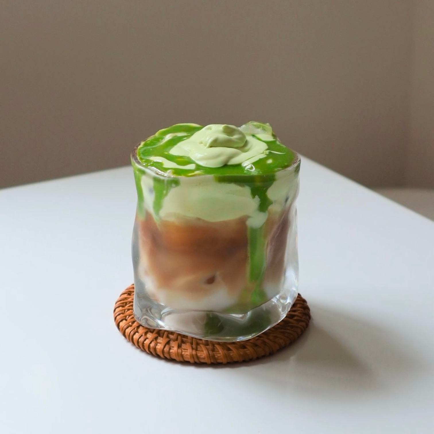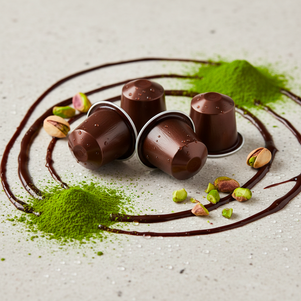 Ceremonial-grade Saemidori matcha from Kagoshima, Japan, delicately infused with natural pistachio aroma and cacao.